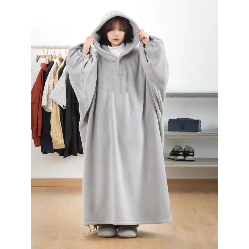 高档美容院专用秋冬日系加绒加厚家居服男女同款 刺绣睡衣超大连帽