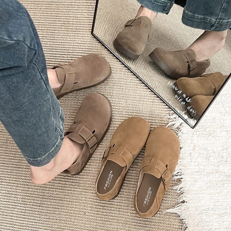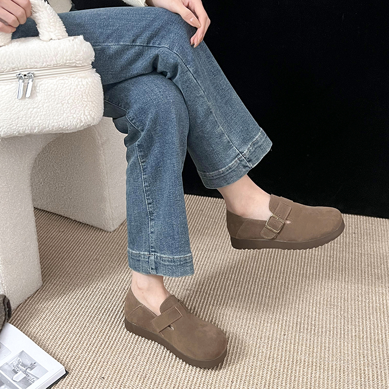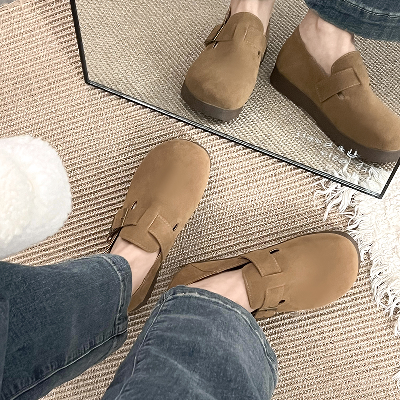 平底博肯单鞋 牛皮材质勃肯鞋 厚底豆豆鞋 一脚蹬女鞋 女2025春秋新款