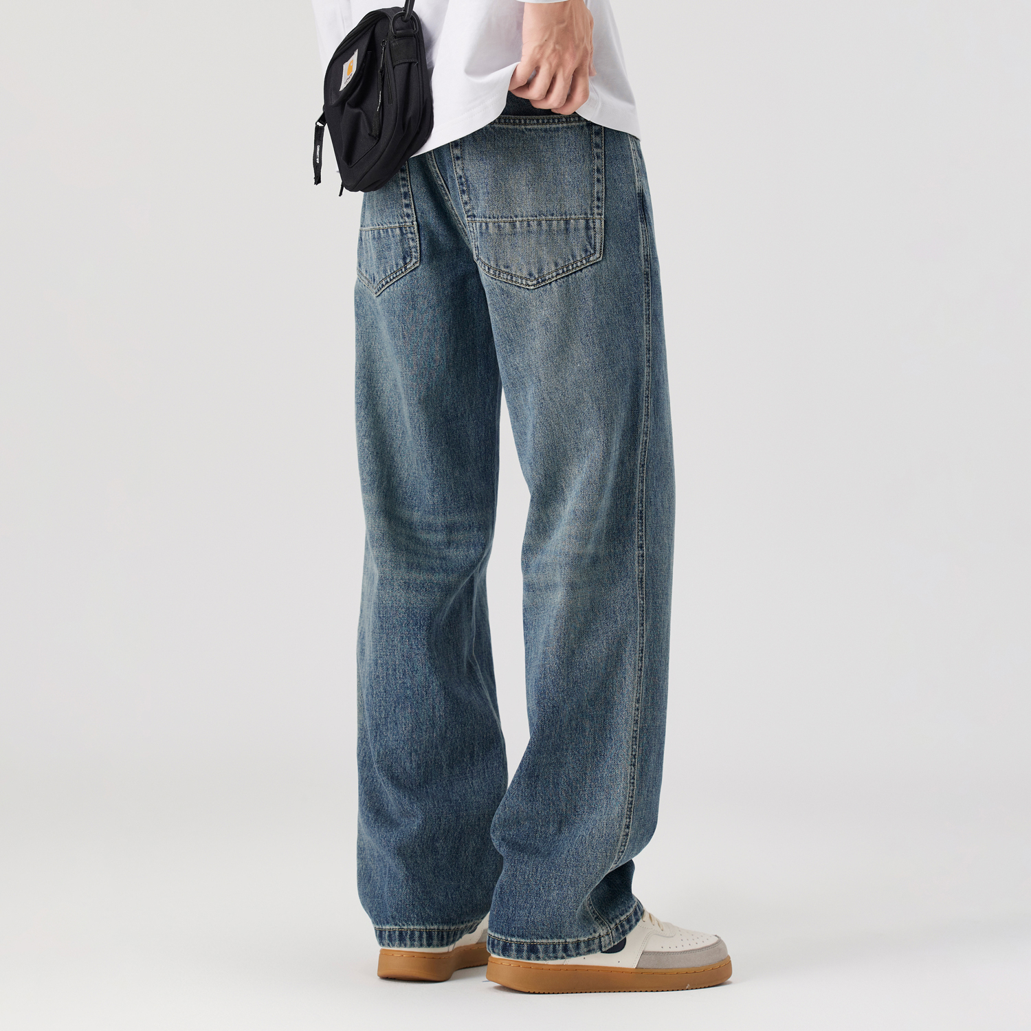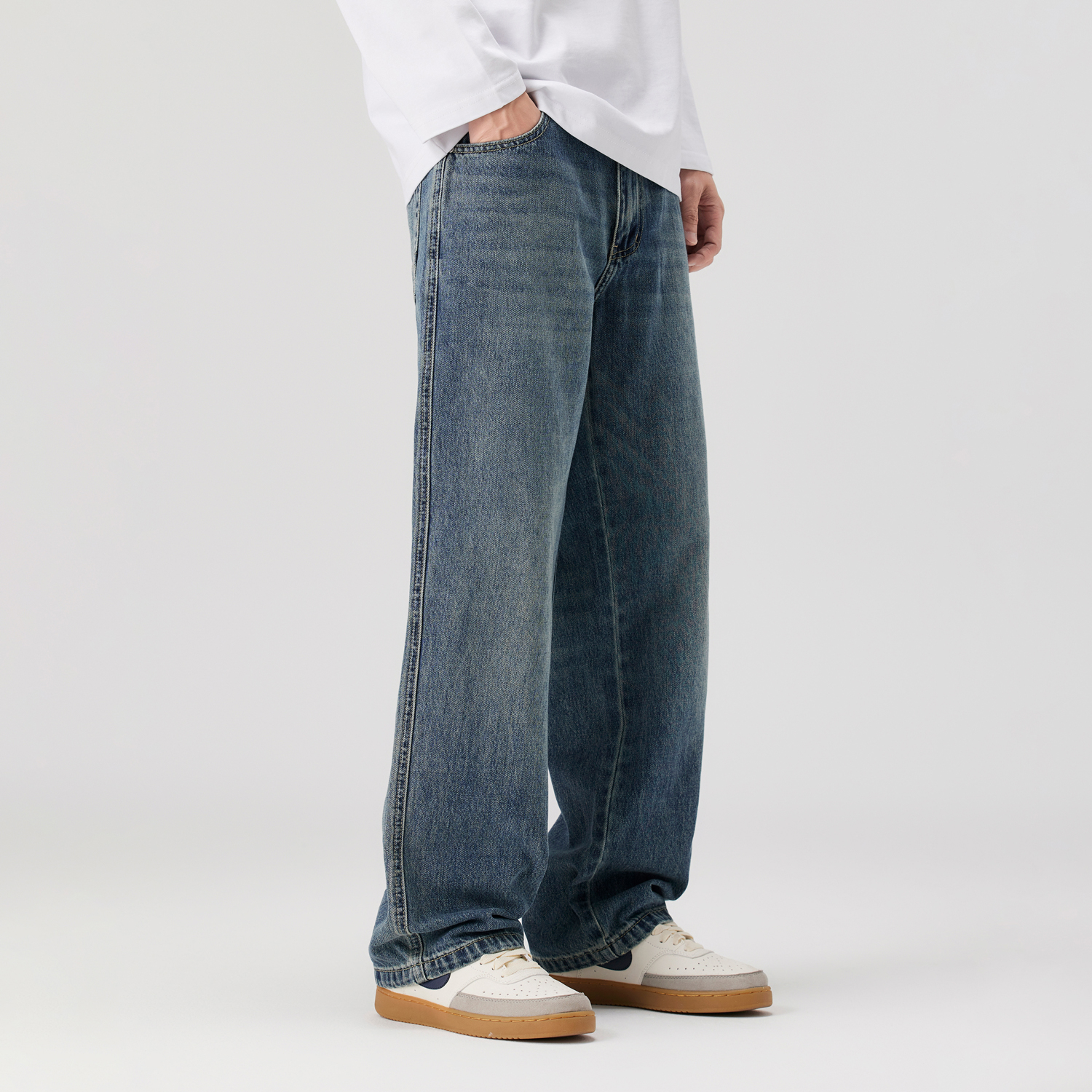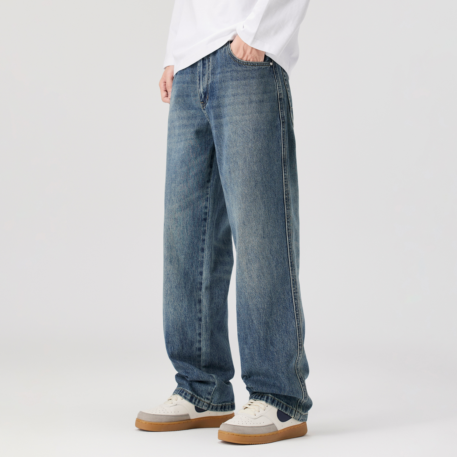 2025新款 复古高街直筒裤 浅蓝色宽松阔腿牛仔裤 美式 男款 Kuvine秋季