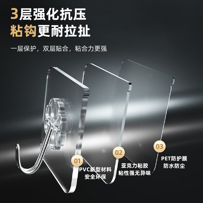 挂钩强力粘胶免打孔壁挂墙上承重透明无痕挂衣钩轻奢钩子粘贴粘钩