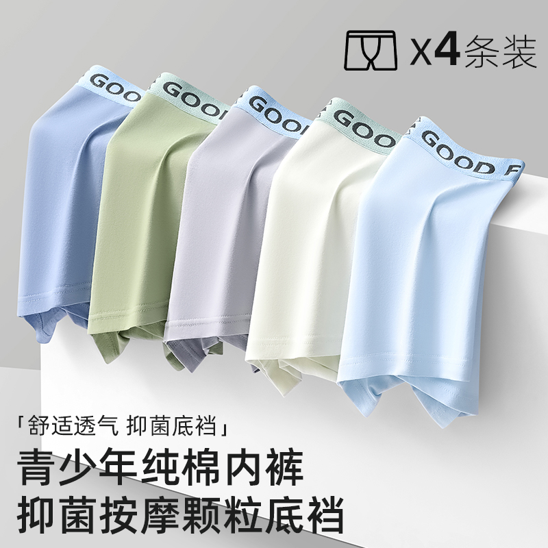 内裤 头透气青少年2025新款 纯棉男生男款 平角短裤 四角裤 南极人男士