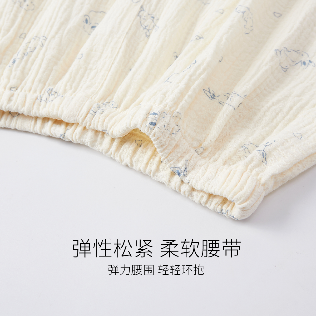 女士家居服全棉秋天 纯棉双层纱秋冬纱布长袖 檐花棉纱睡衣女款 秋季