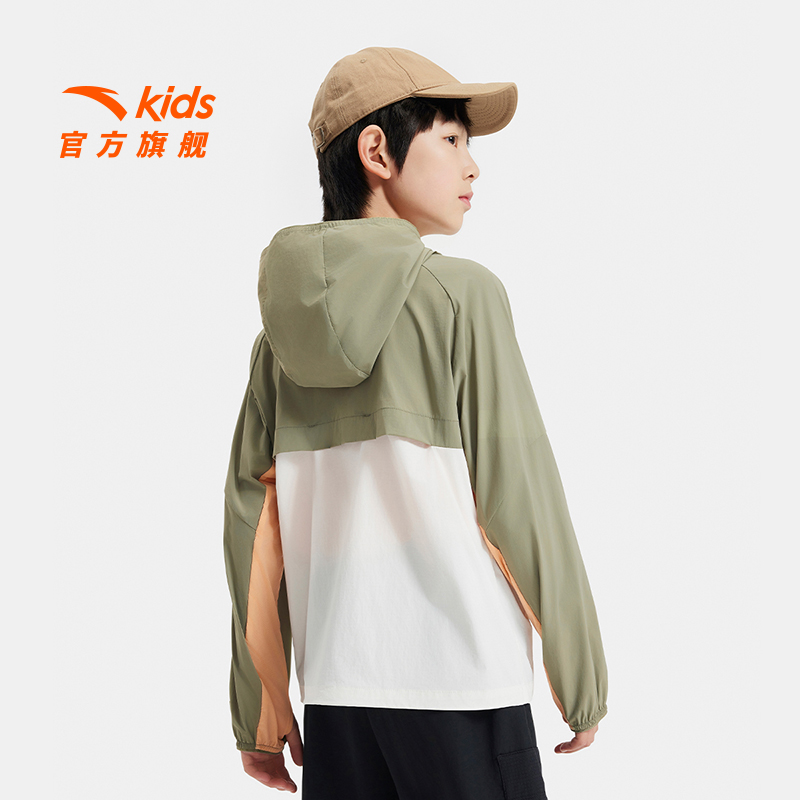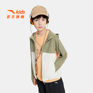 安踏儿童装 上新透气中大童防晒衣连帽薄外套 男童运动上衣2025新款