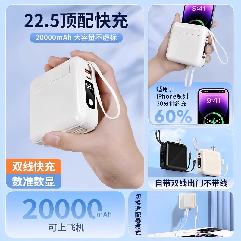 大容量20000毫安自带线快充移动电源适用小米苹果17专用官方正旗舰店 倍思2025新款 充电宝3c认证可上飞机
