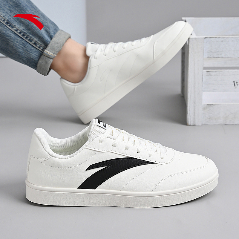 新款 小白鞋 皮面休闲鞋 安踏板鞋 运动鞋 秋季 官方旗舰白色男士 男 男鞋