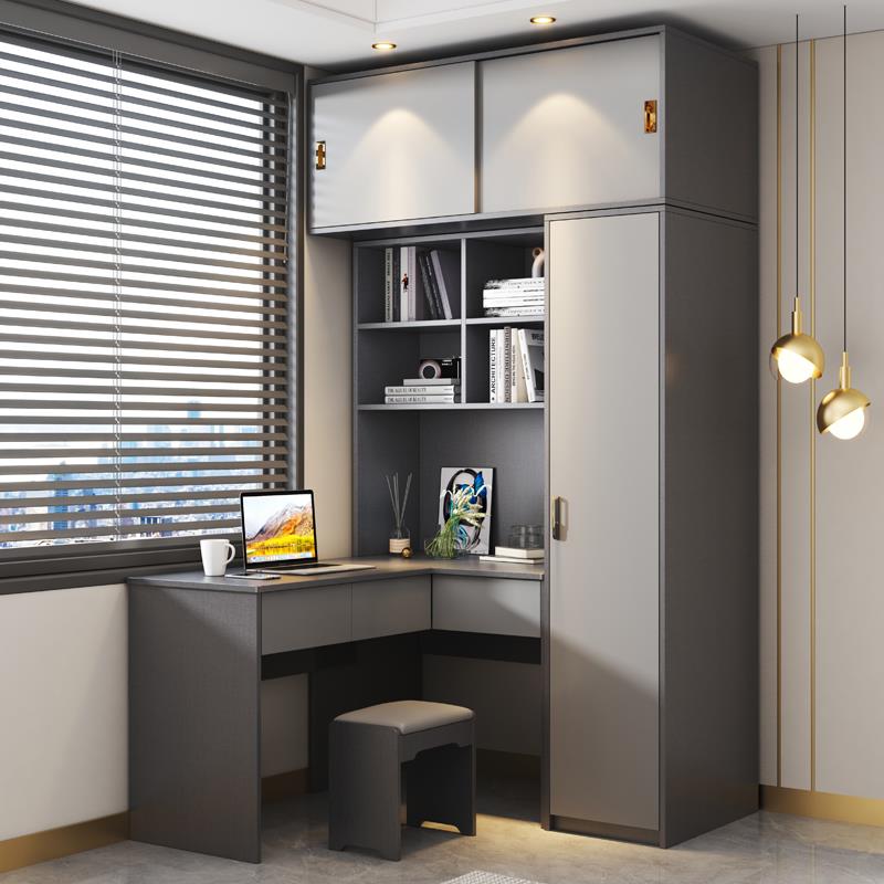 转角现代书柜电脑桌儿童书桌连体组合衣柜书架学习桌一体储物柜子