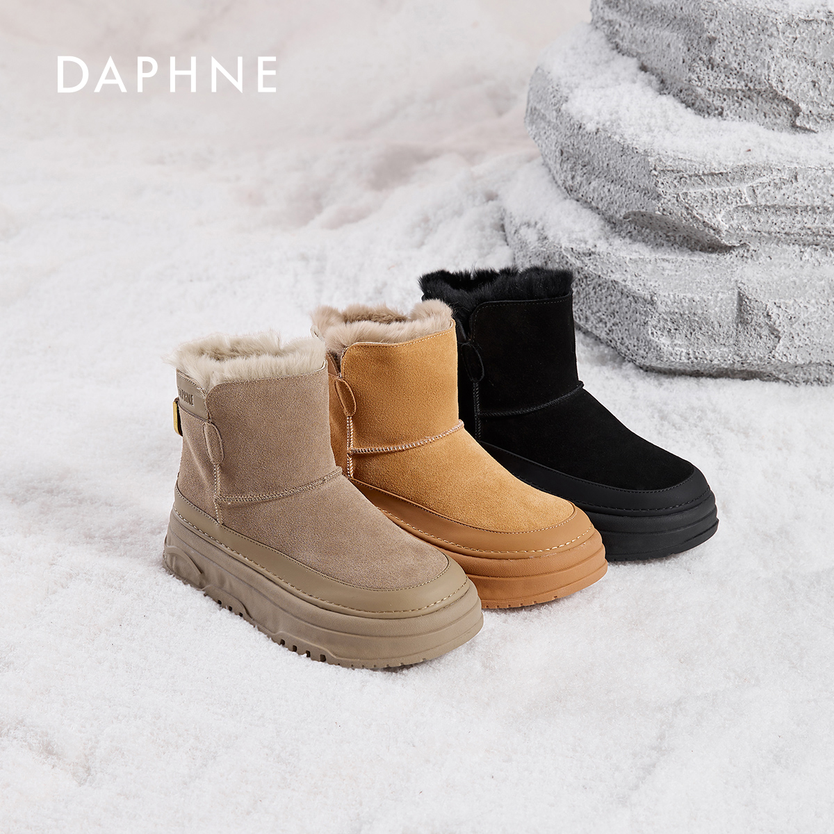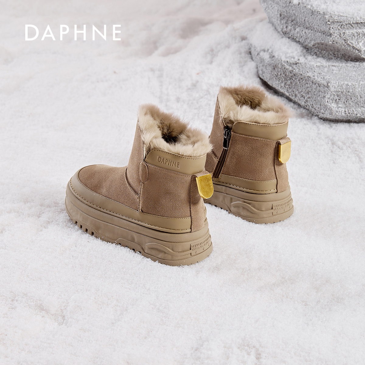 达芙妮厚底雪地靴女2025新款 子 秋冬加绒加厚保暖百搭短筒毛毛棉鞋