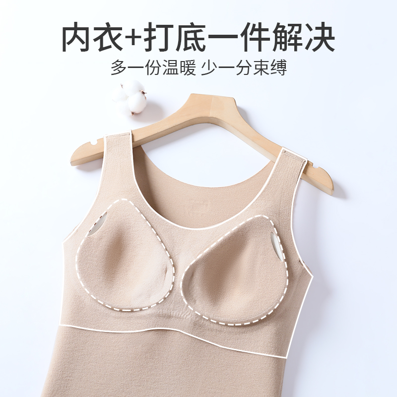 蝶安芬无痕保暖背心女打底春夏加绒加厚内搭带胸垫一体式 发热内衣