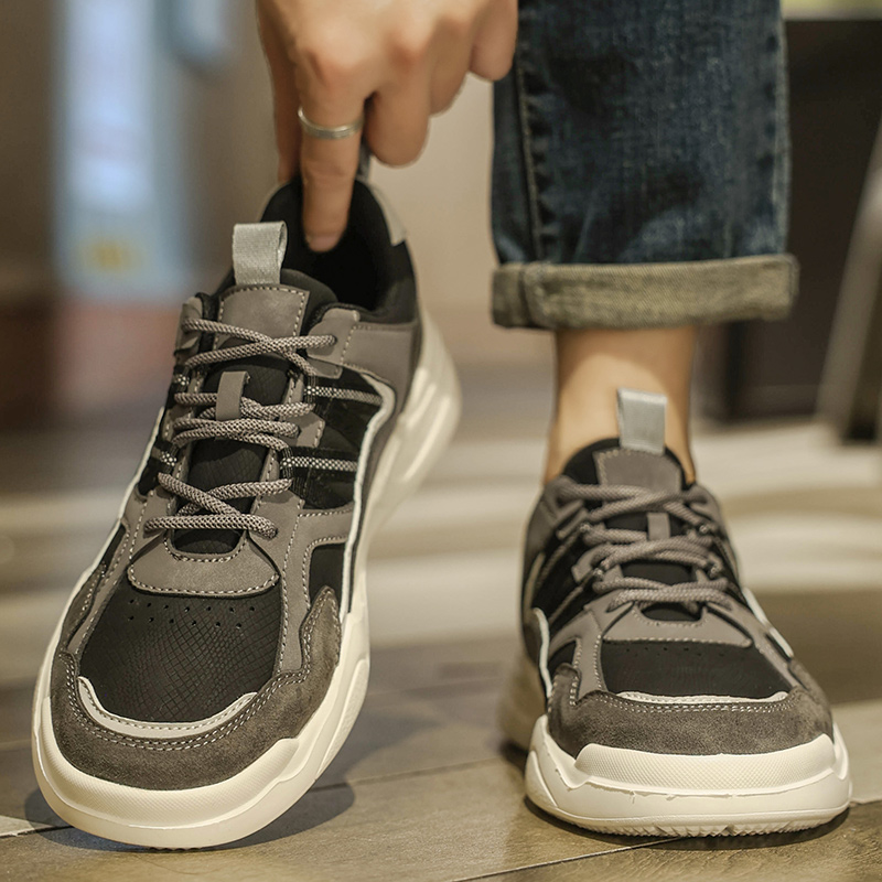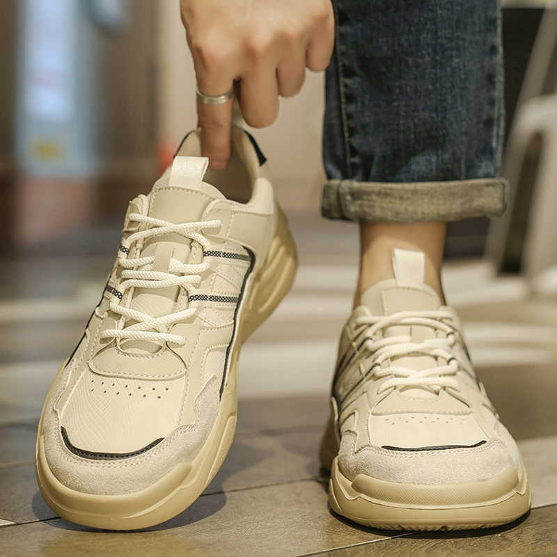 真皮防水防滑运动软底增高老爹潮鞋 男鞋 男士 潮流百搭休闲板鞋 秋季