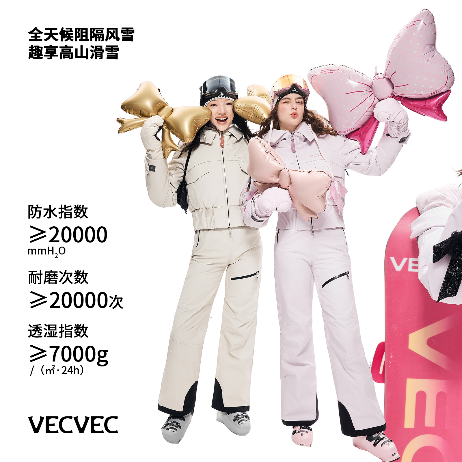 VECVEC滑雪服3L短款 可爱女 夹克外套羽绒保暖防风防水户外运动时尚