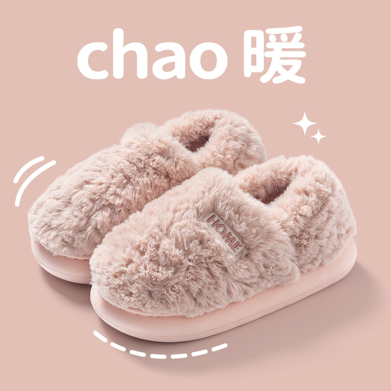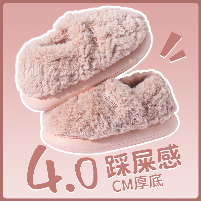 冬季 舒适厚底防滑室内居家包跟情侣棉鞋 女士冬天保暖毛毛鞋 棉拖鞋