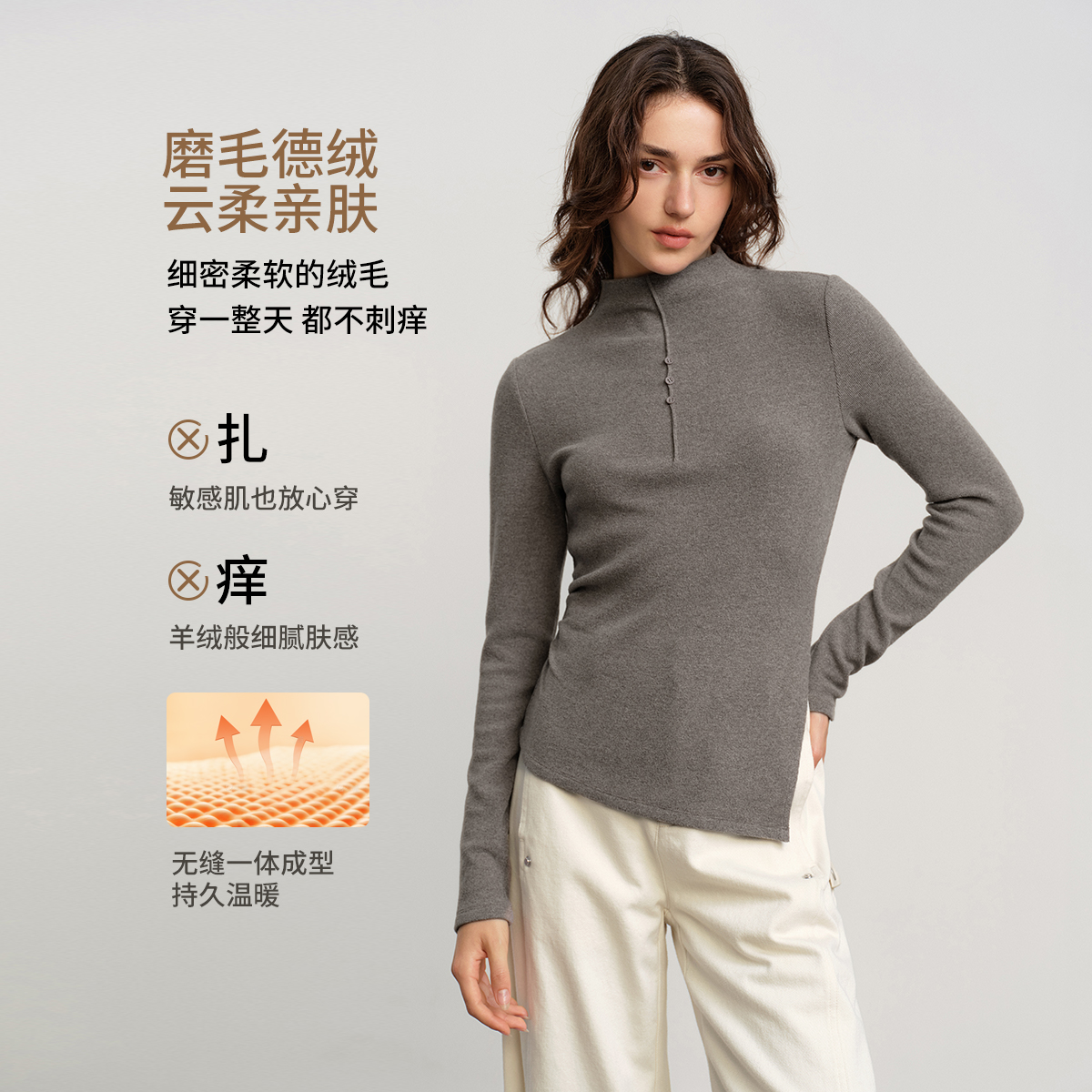 ZH回力半高领长袖 t恤紧身保暖磨毛内搭上衣 女2025秋冬加厚打底衫