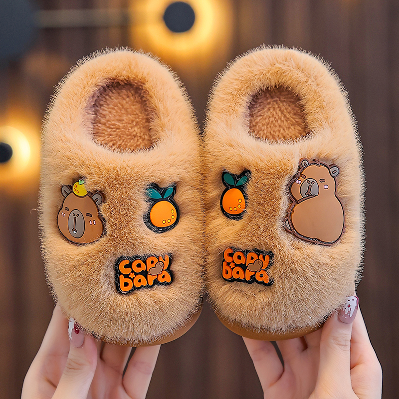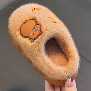 室内防滑男孩宝宝毛毛拖鞋 2025新款 男童秋冬季 卡皮巴拉儿童棉拖鞋