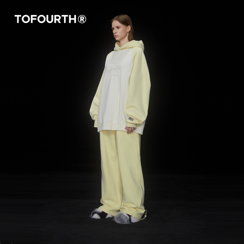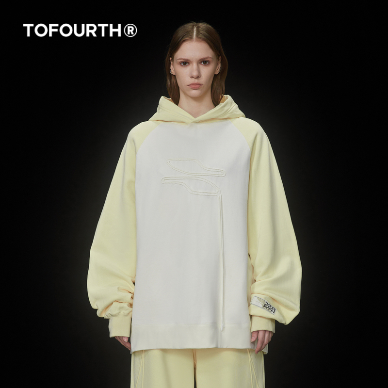 纯棉插肩袖 连帽套头上衣男女同款 加绒 明星同款 TOFOURTH卫衣