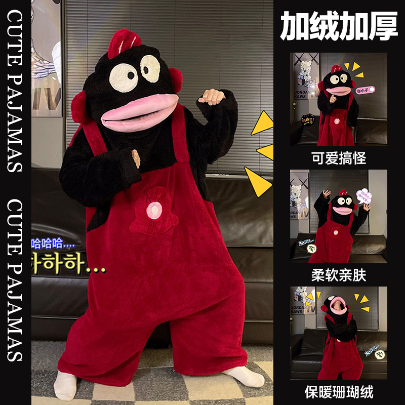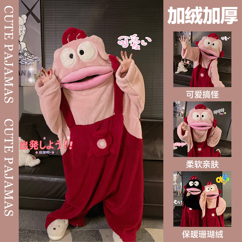 丑鱼连体睡衣女珊瑚绒加厚保暖秋冬季 卡通搞怪可爱情侣睡袍家居服
