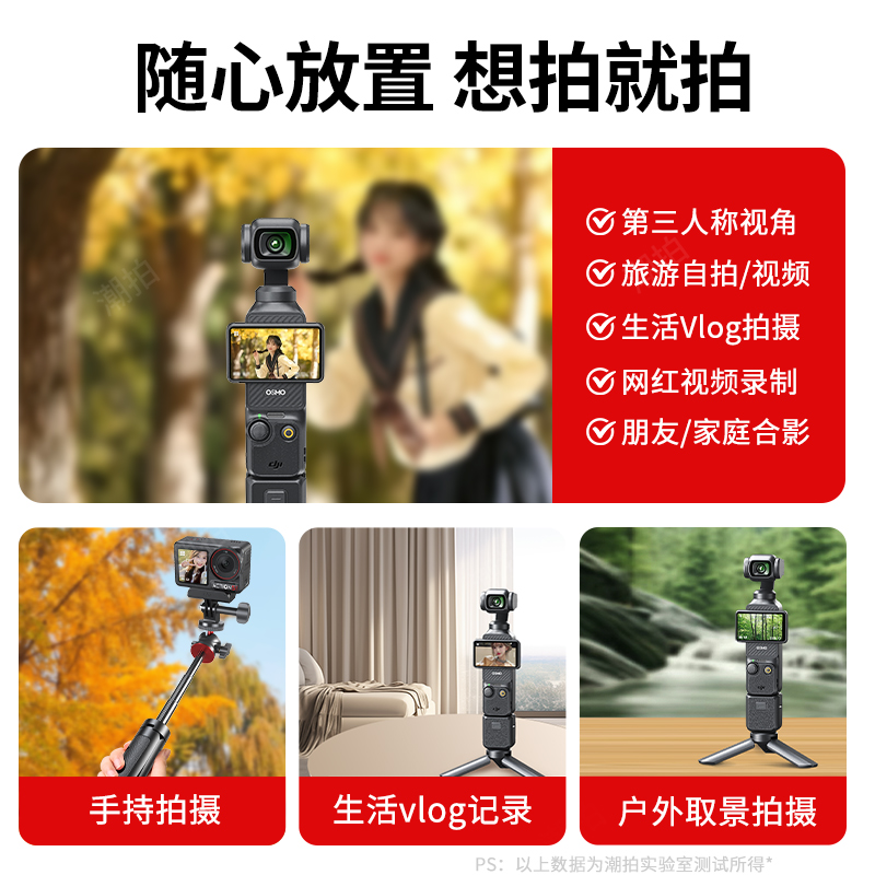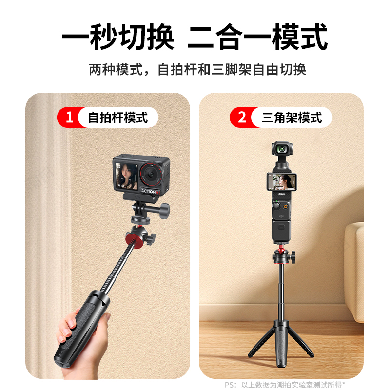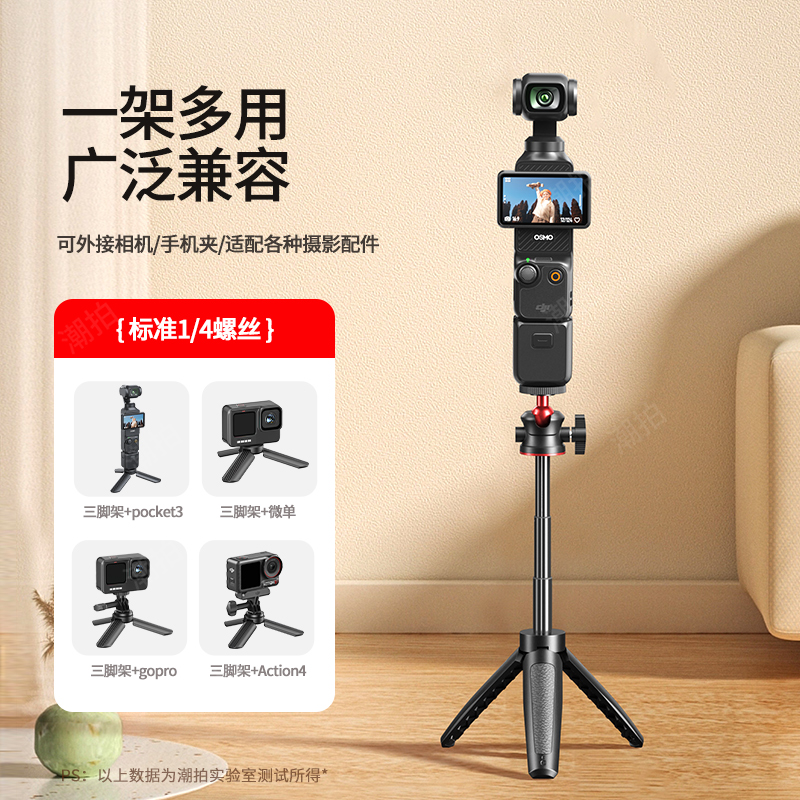 适用DJI大疆pocket3 5支架口袋云台pro运动相机手机桌面迷你便携 Osmo三脚架手持自拍杆伸缩延长落地action4