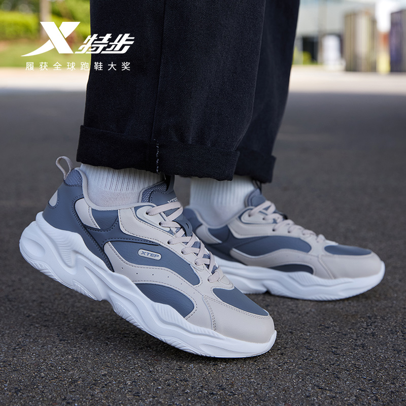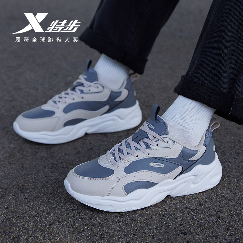 休闲鞋 特步男鞋 软底轻便老爹鞋 官方旗舰学生皮面运动鞋 男 2025秋季