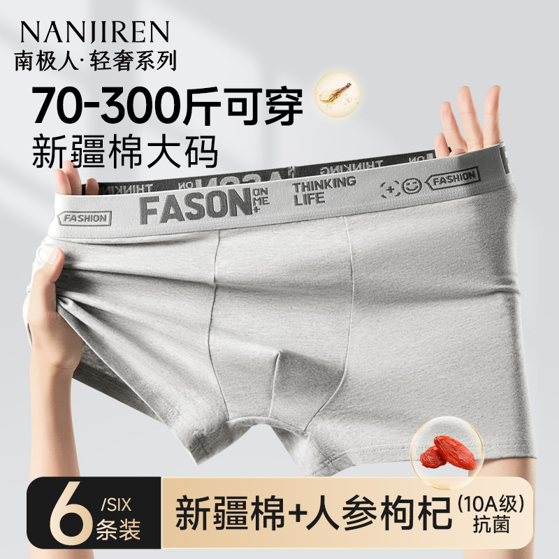 头大码 男生纯棉抗菌四角裤 男式 平角短裤 南极人男士 衩2025新款 内裤