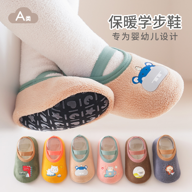 宝宝地板袜儿童春秋冬室内防滑软底加绒学步防凉袜子厚婴幼儿鞋 袜