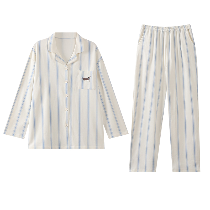 巨柔软 男女家居服套装 纯棉睡衣情侣春秋款 宽松大码 长袖 安之伴