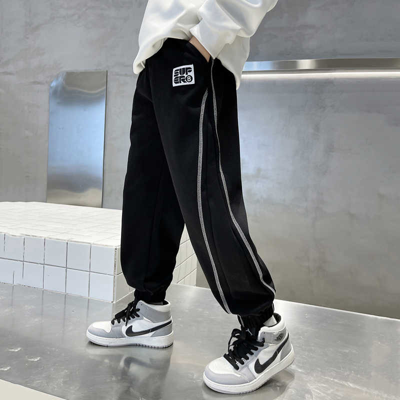 百搭宽松休闲哈伦裤 2025秋冬新款 子 女条纹拼接束脚运动裤 欧货卫裤