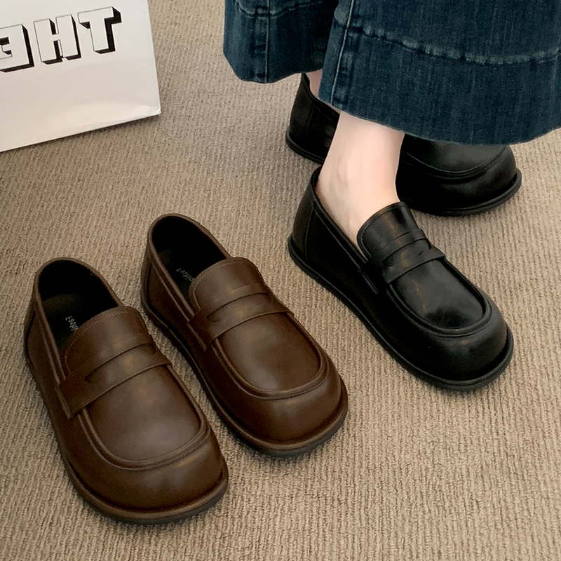 子平底百搭黑色豆豆单鞋 软底小皮鞋 春秋英伦风鞋 女2025新款 乐福鞋