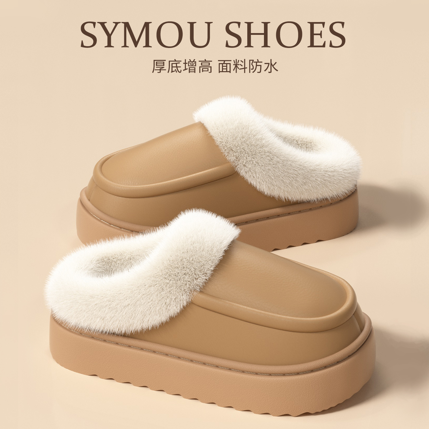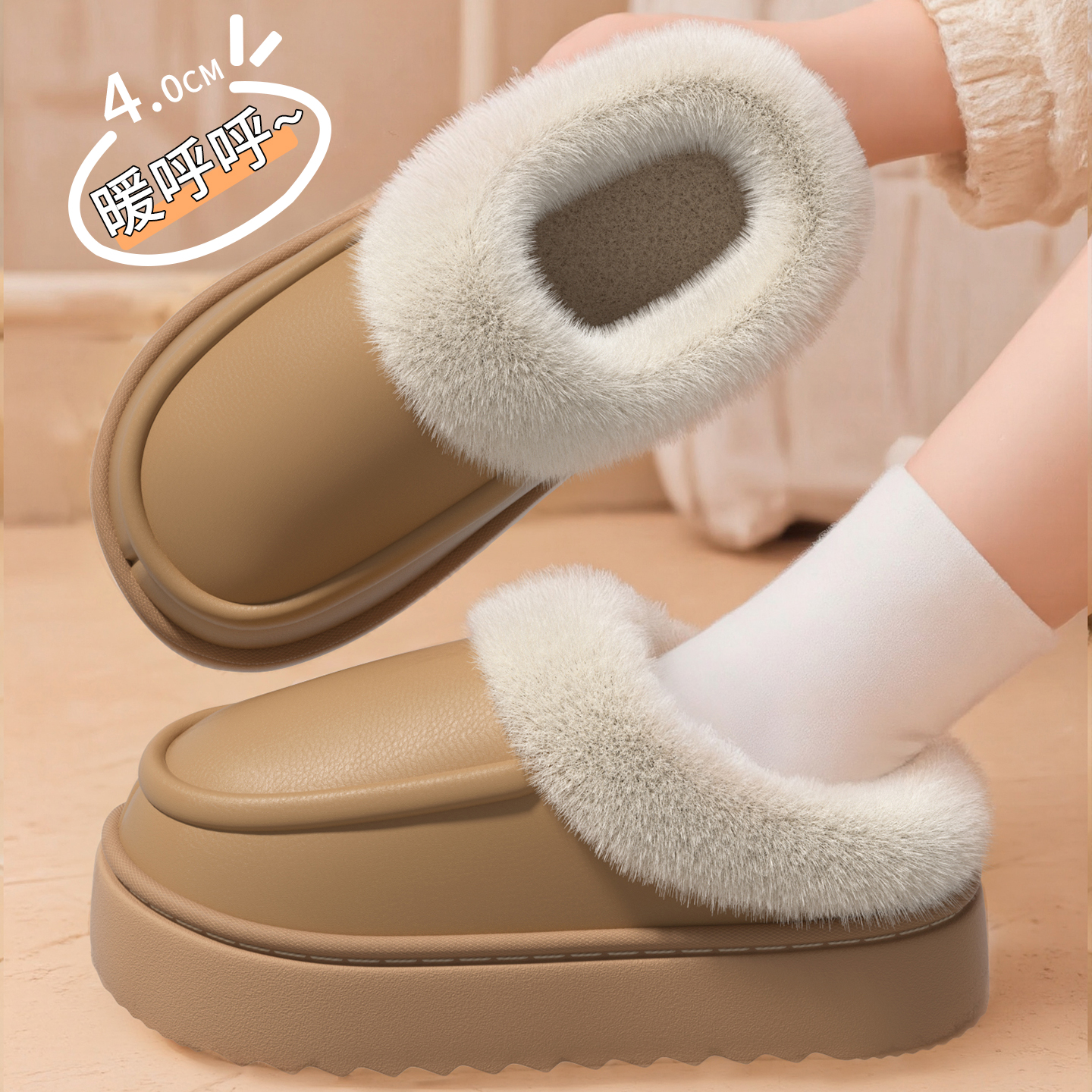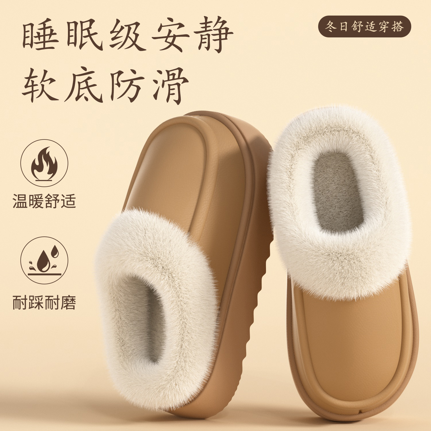 居家室内加绒保暖防滑踩屎感加厚毛绒情侣棉鞋 厚底棉拖鞋 2025新款