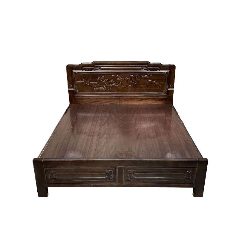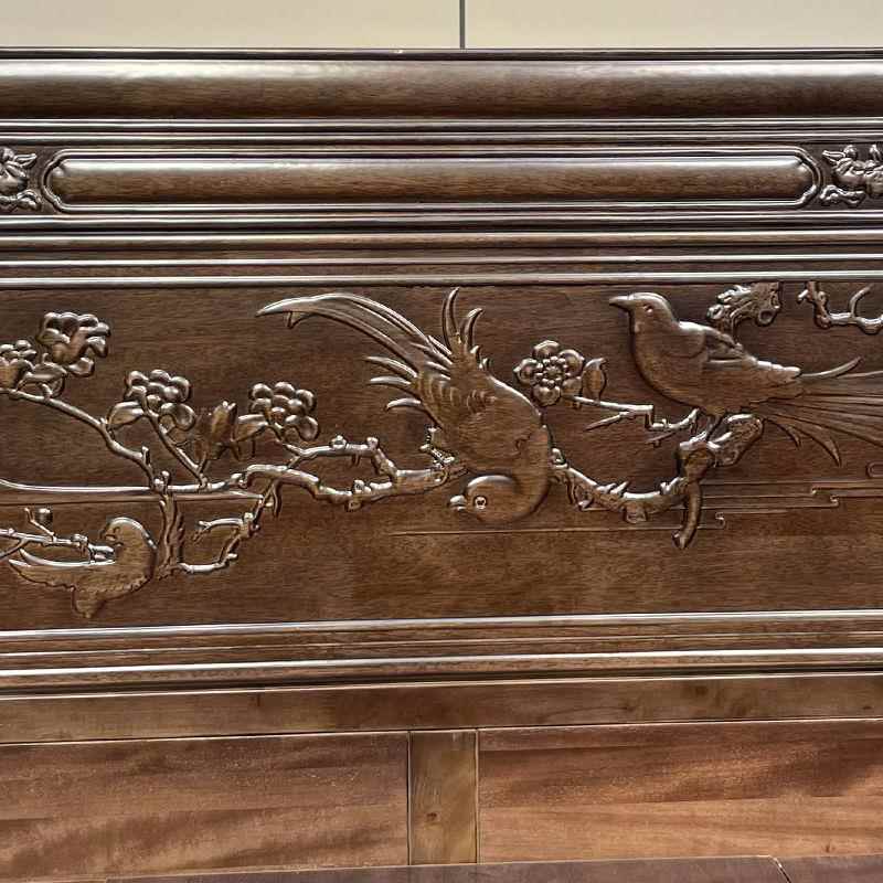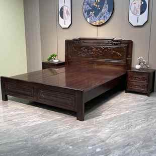 紫金檀木新中式 实木床1米8卧室双人床古典雕花家用榫卯床主卧婚床