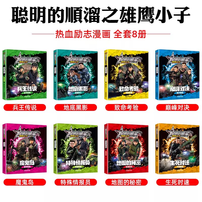 漫画书热血励志漫画军事故事书少儿读物小学生课外阅读书籍动画连环画 儿童注音版 全套8册聪明 顺溜之雄鹰小子全集正版