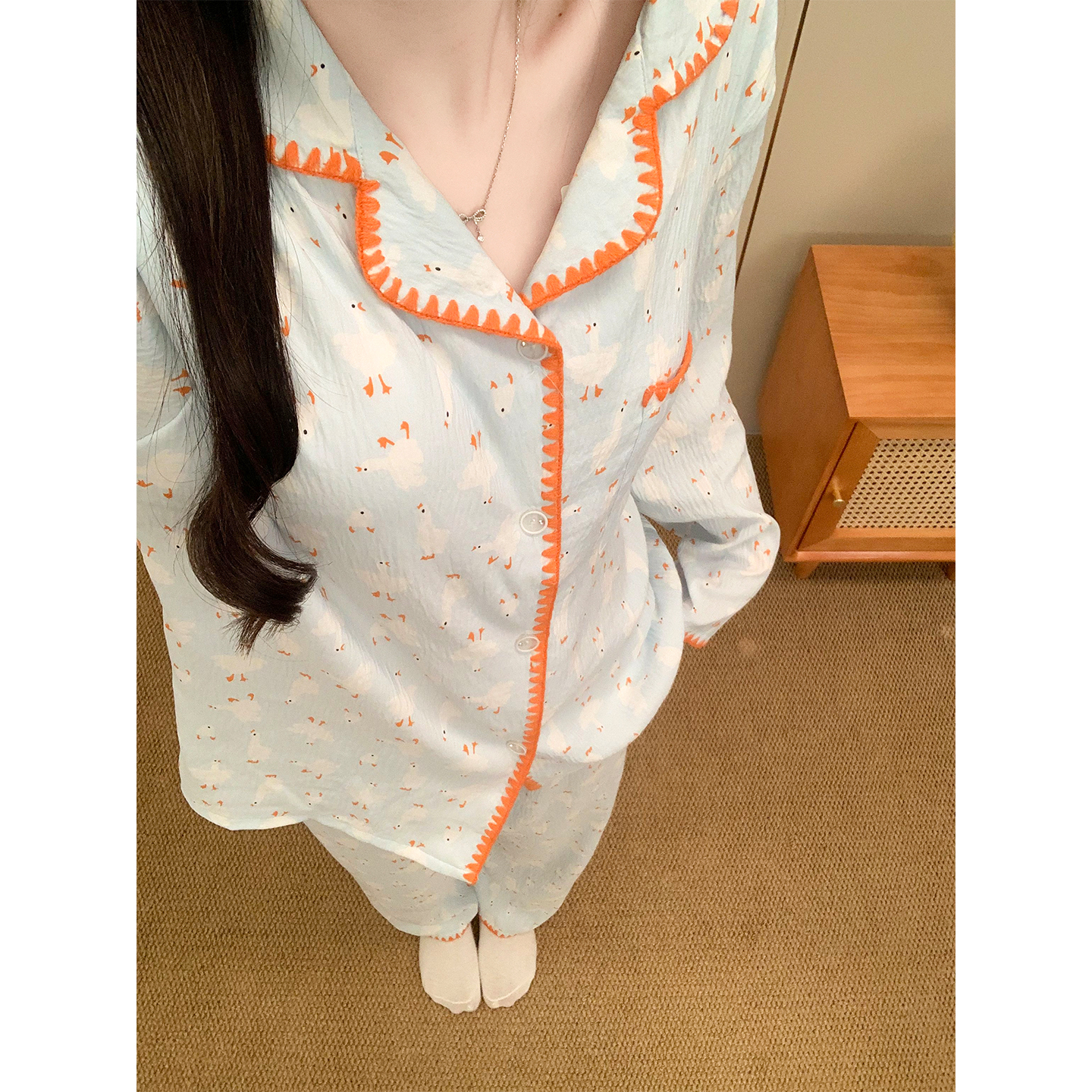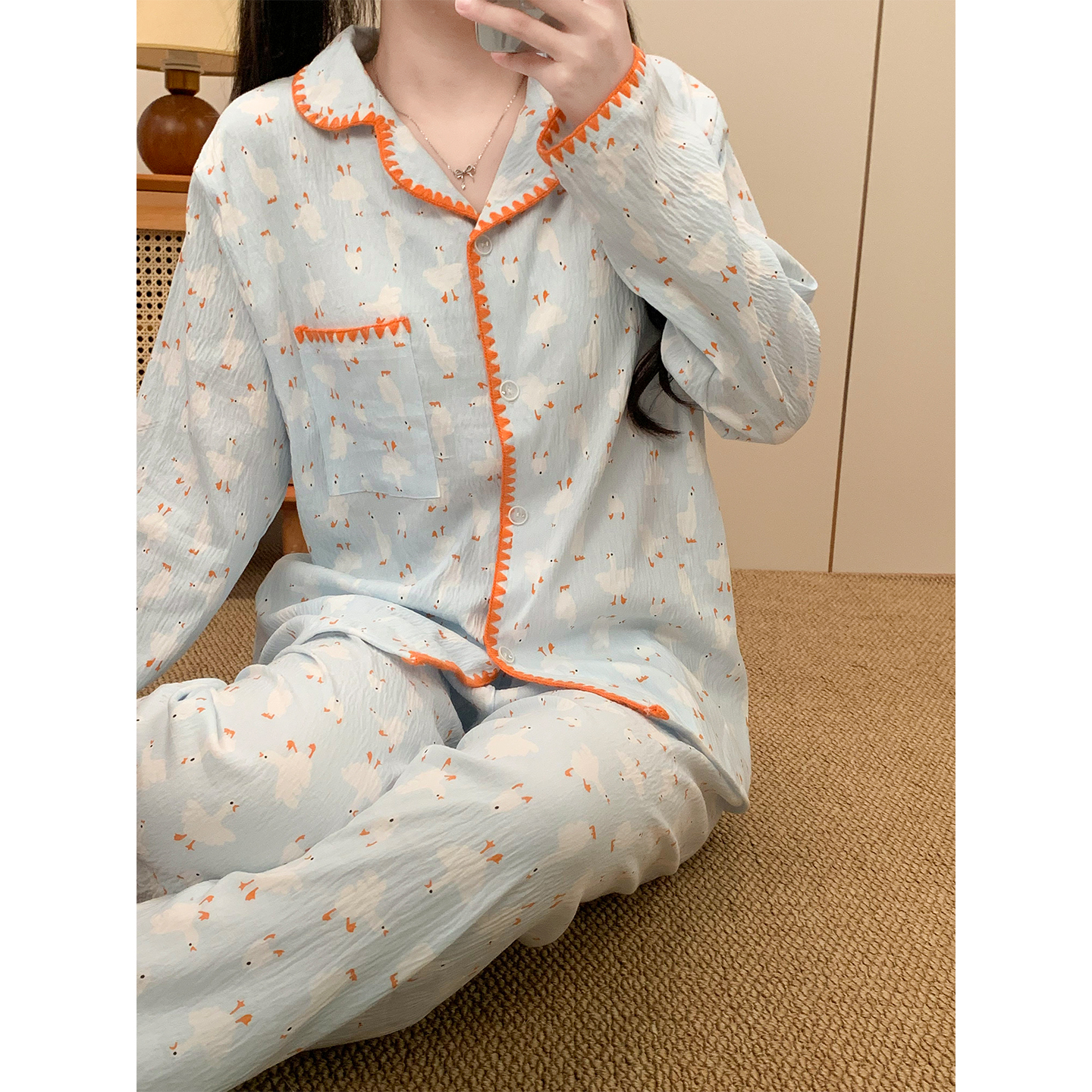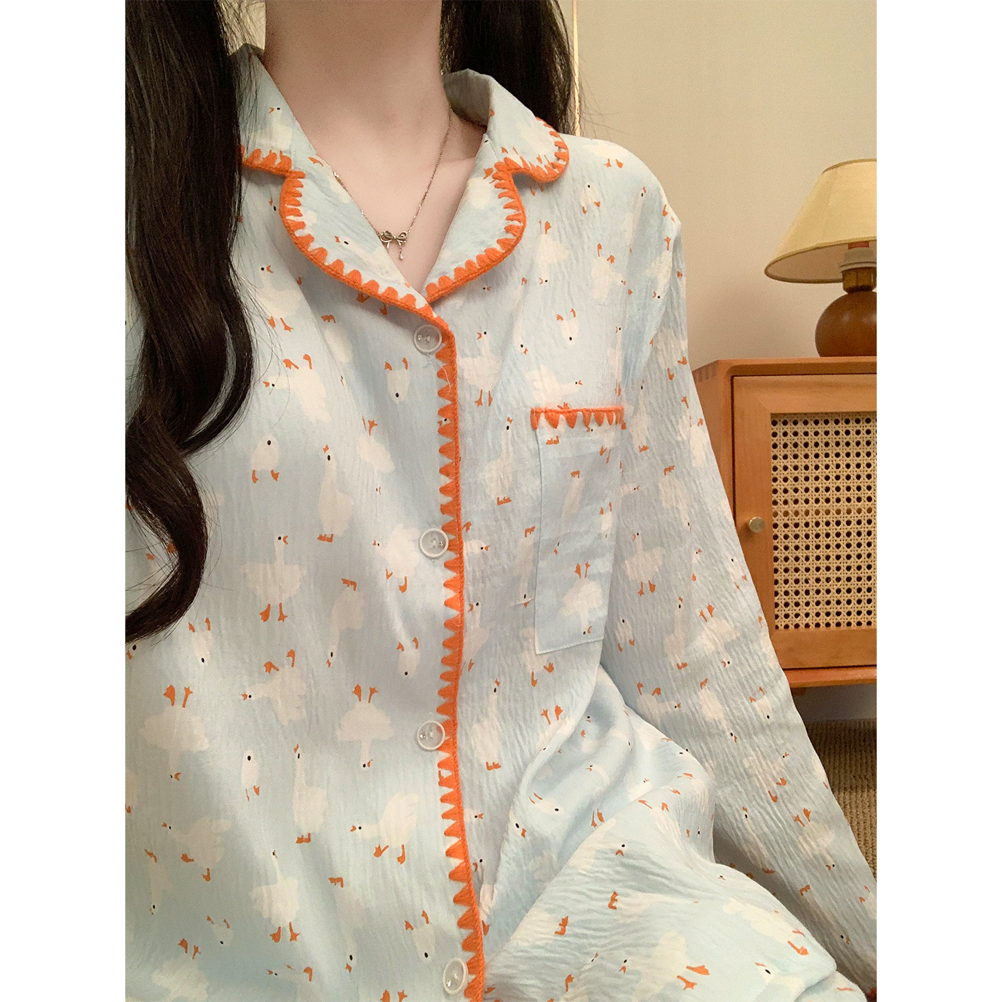 冬季 长裤 可外穿家居服 带胸垫日系可爱长袖 梦鸾大白鹅睡衣女春秋款
