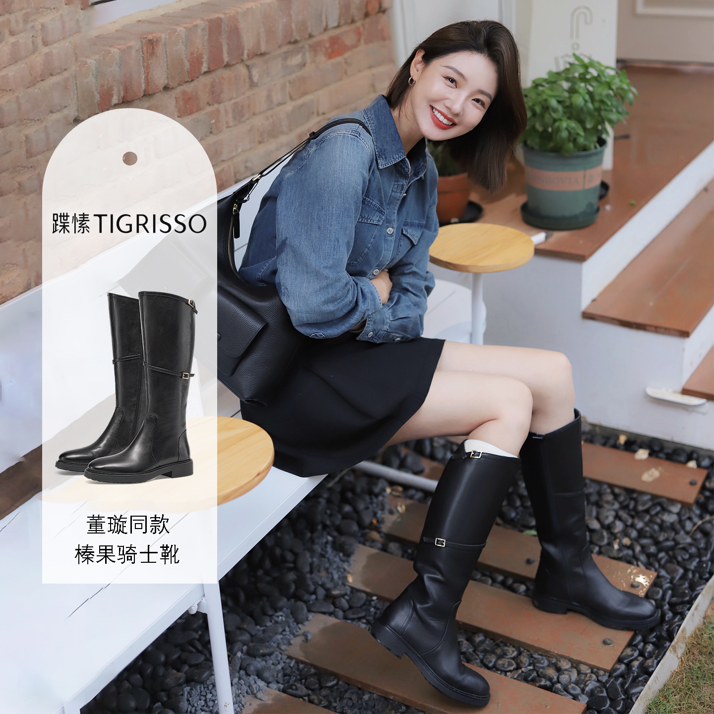榛果蹀愫25秋冬骑士靴加绒港风长筒靴TA65710 沈梦辰 董璇同款