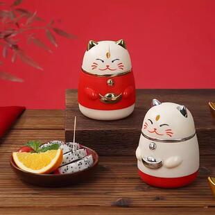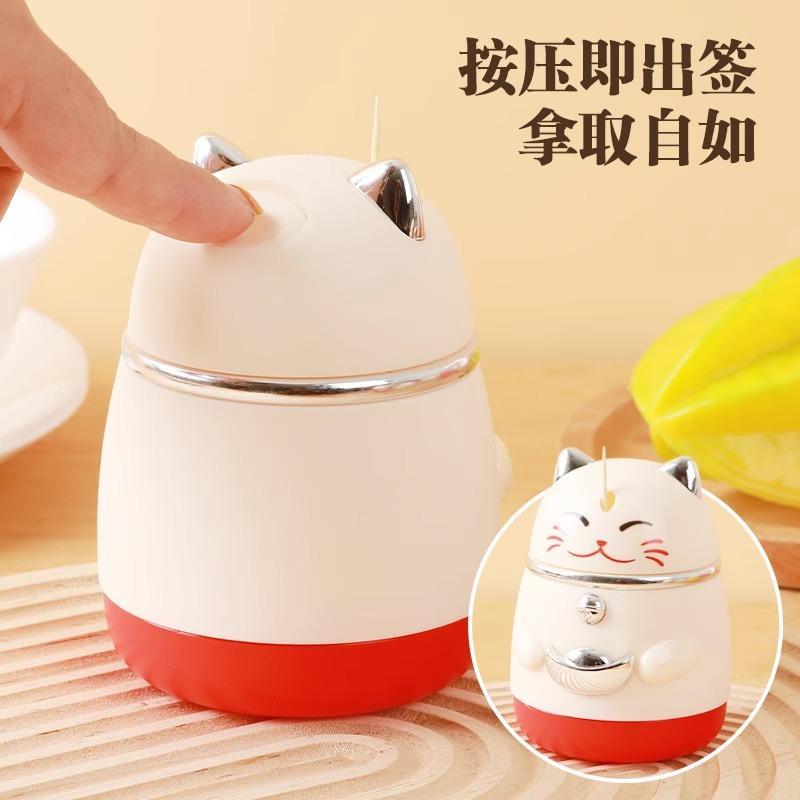 牙签盒2025新款 自动弹出轻奢高级高颜值家用创意招财猫牙签筒空瓶