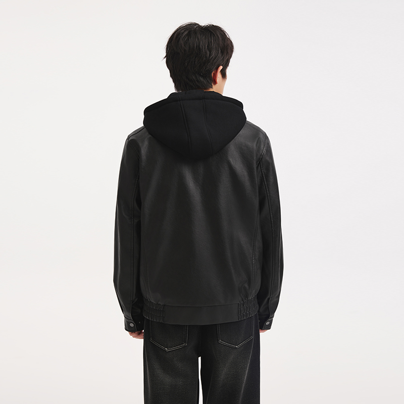 宽松夹克 太平鸟黑色仿手搓油蜡皮PU皮衣外套女2025款 时尚
