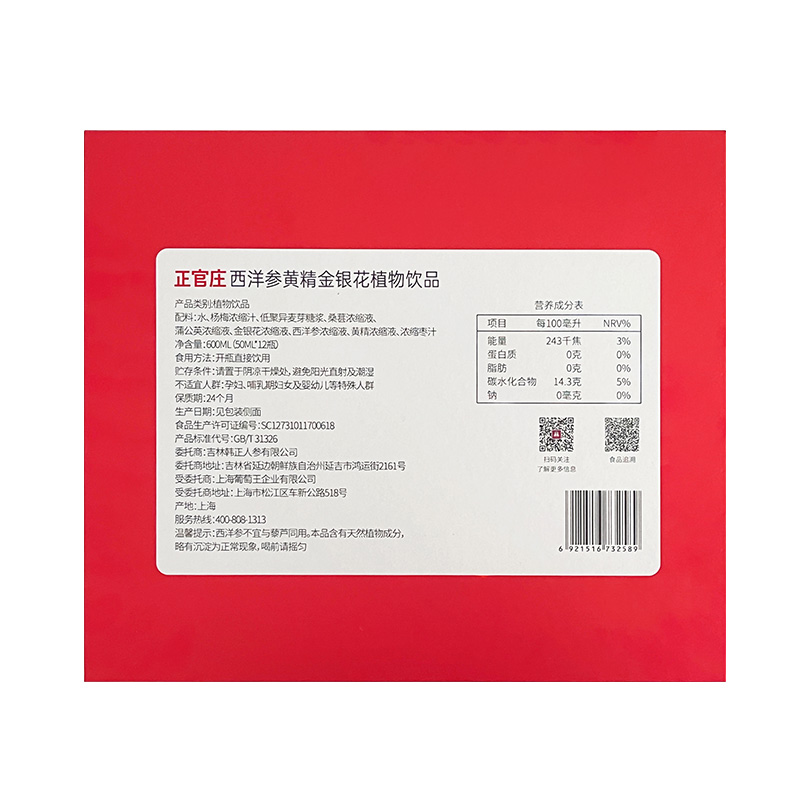50ml官方旗舰店 正官庄西洋参黄精金银花植物饮品瓶装 虾米专属