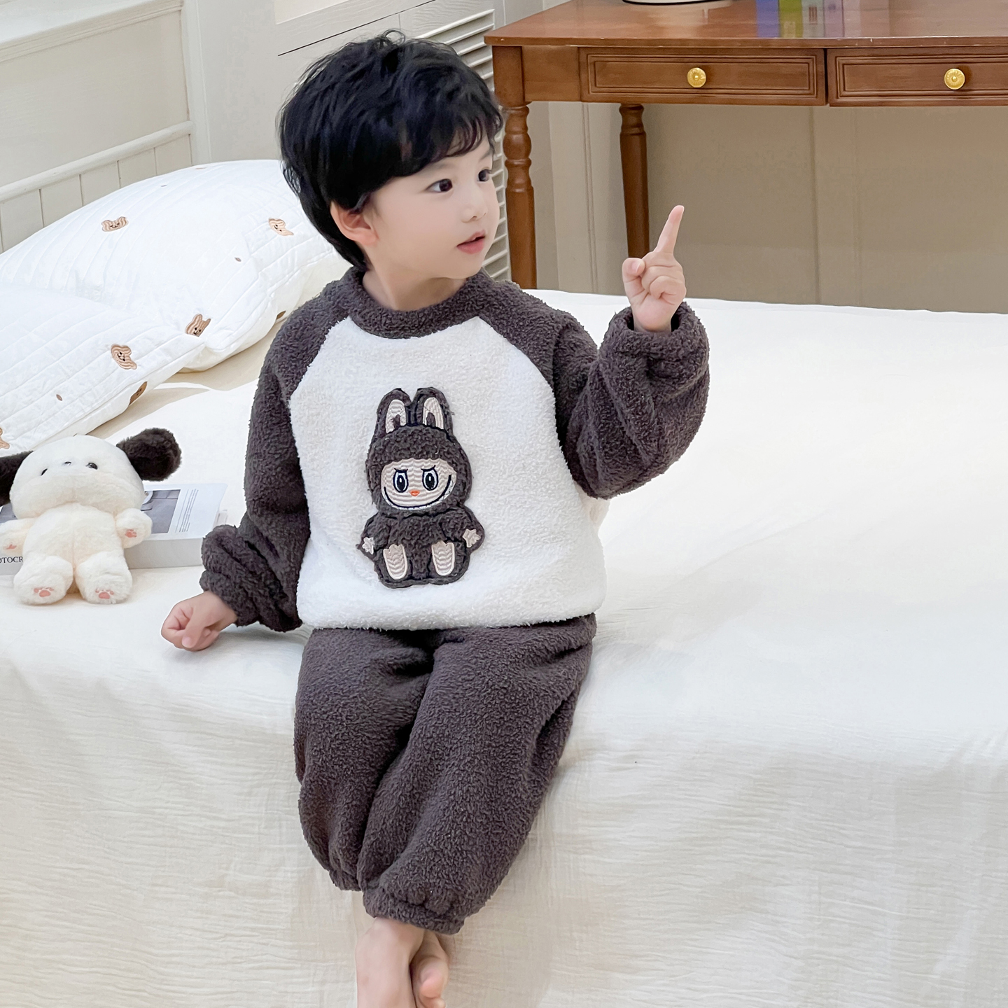 2025新款 儿童睡衣秋冬季 珊瑚绒加厚男宝宝拉布布奥特曼家居服套装