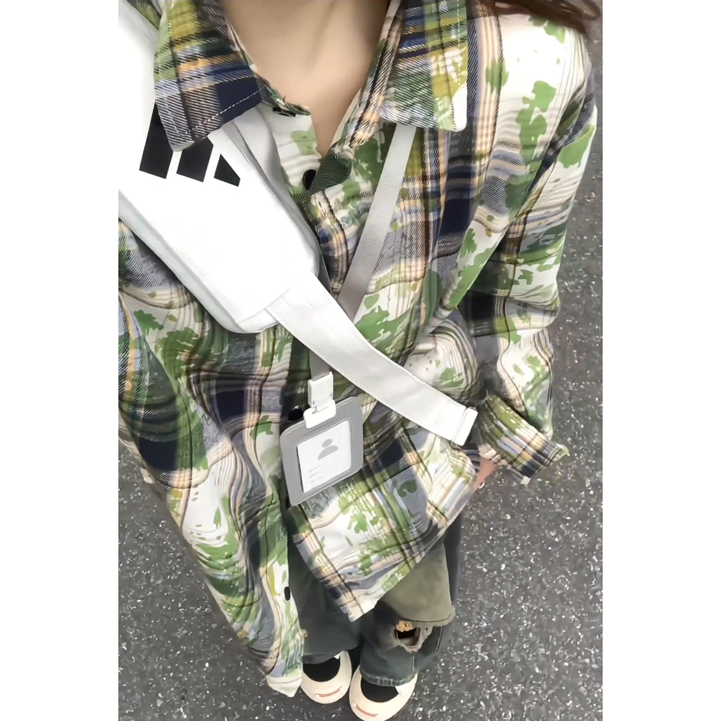 衬衣 复古vintage外套痞帅情侣长袖 牛油果绿扎染格子衬衫 男女美式