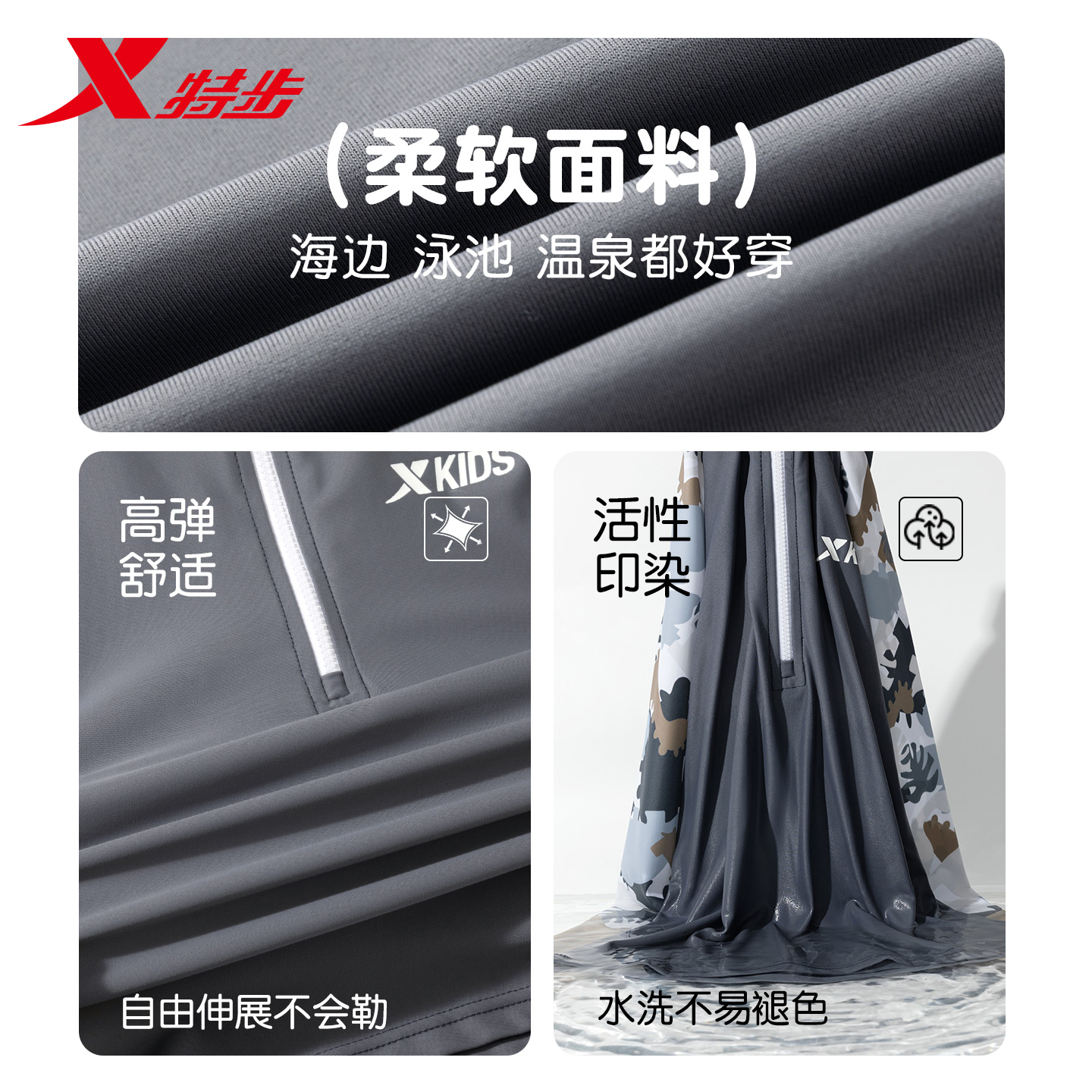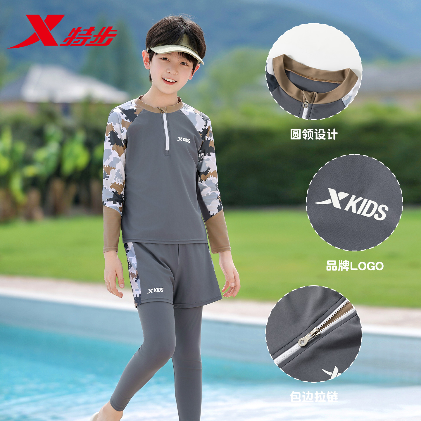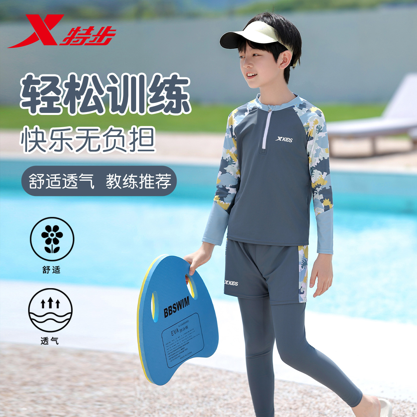 温泉套装 特步儿童泳衣男童分体长袖 中大童男孩游泳裤 2025新款 长裤