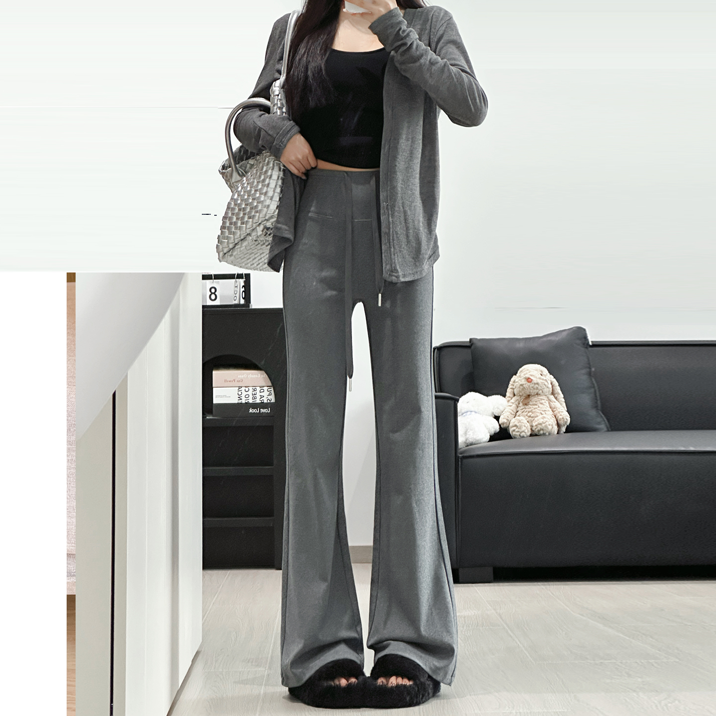 休闲显瘦卫裤 白灰色运动裤 高腰直筒宽松阔腿美式 春秋季 女2025新款