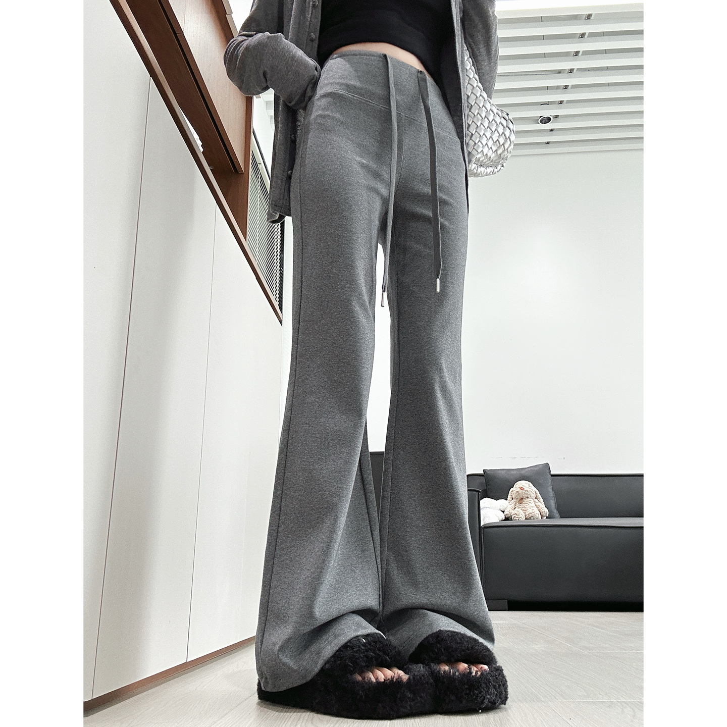 休闲秋冬阔腿裤 高腰直筒宽松香蕉卫裤 子 女春秋2025新款 灰色运动裤