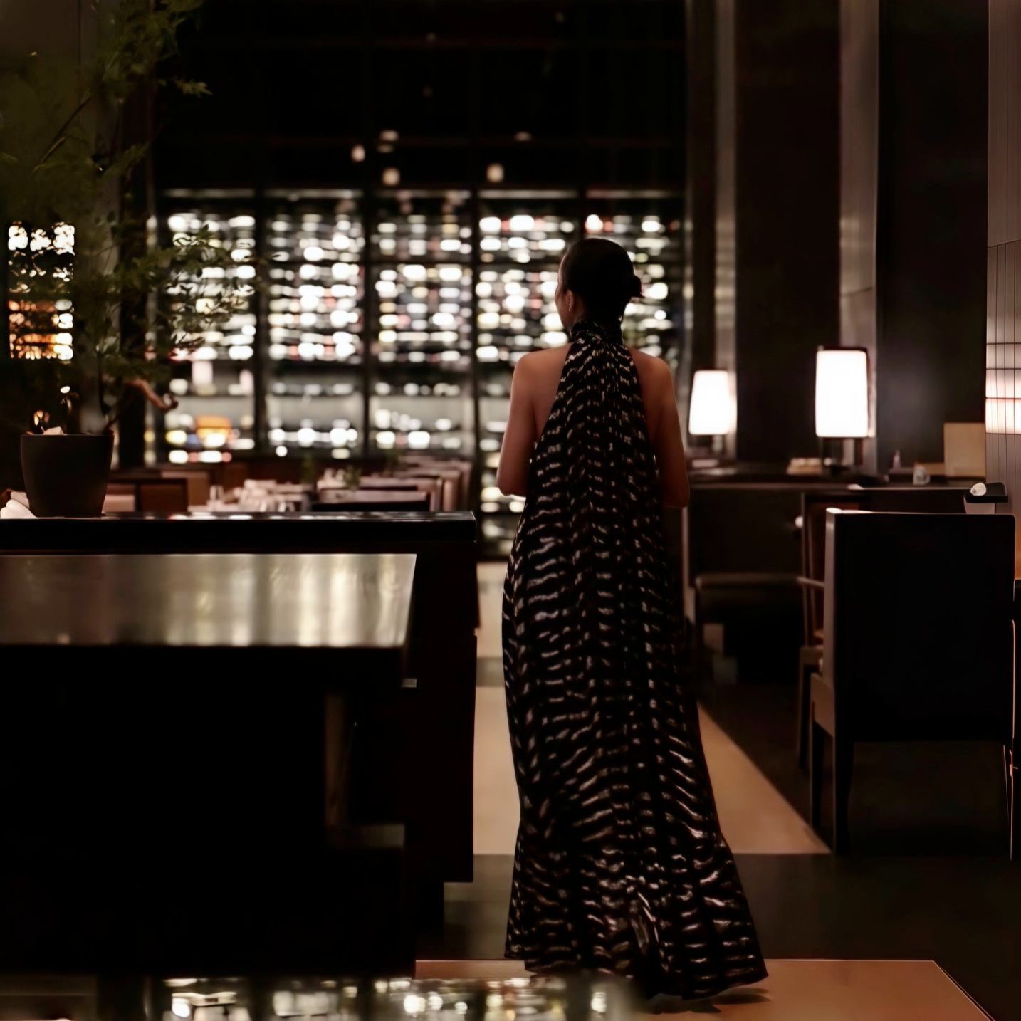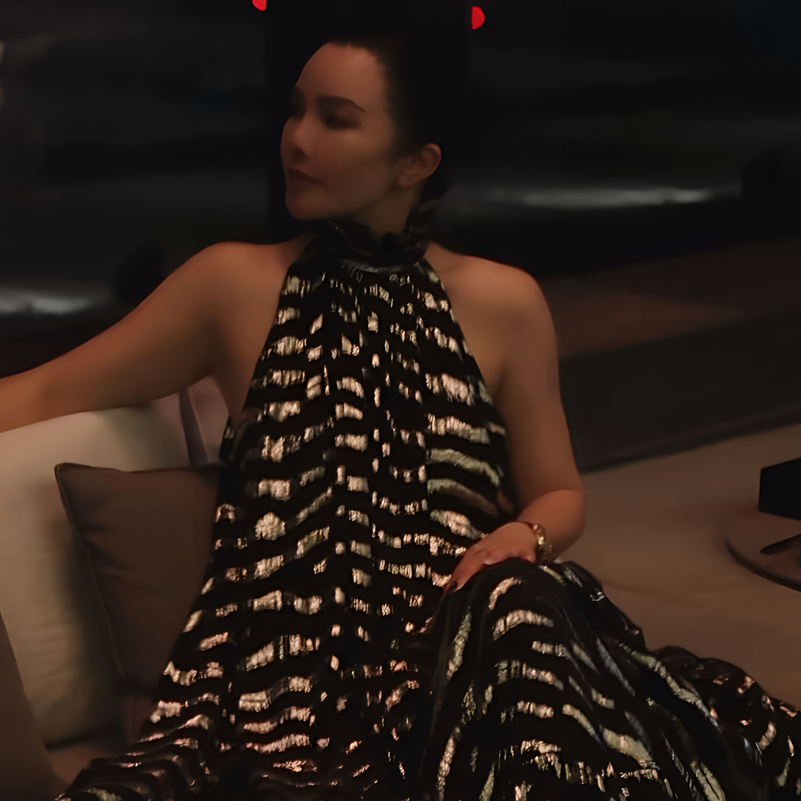 度假风V领印花长裙连衣裙1H25KARL 柔影星点法式 bash2025新款 秋季