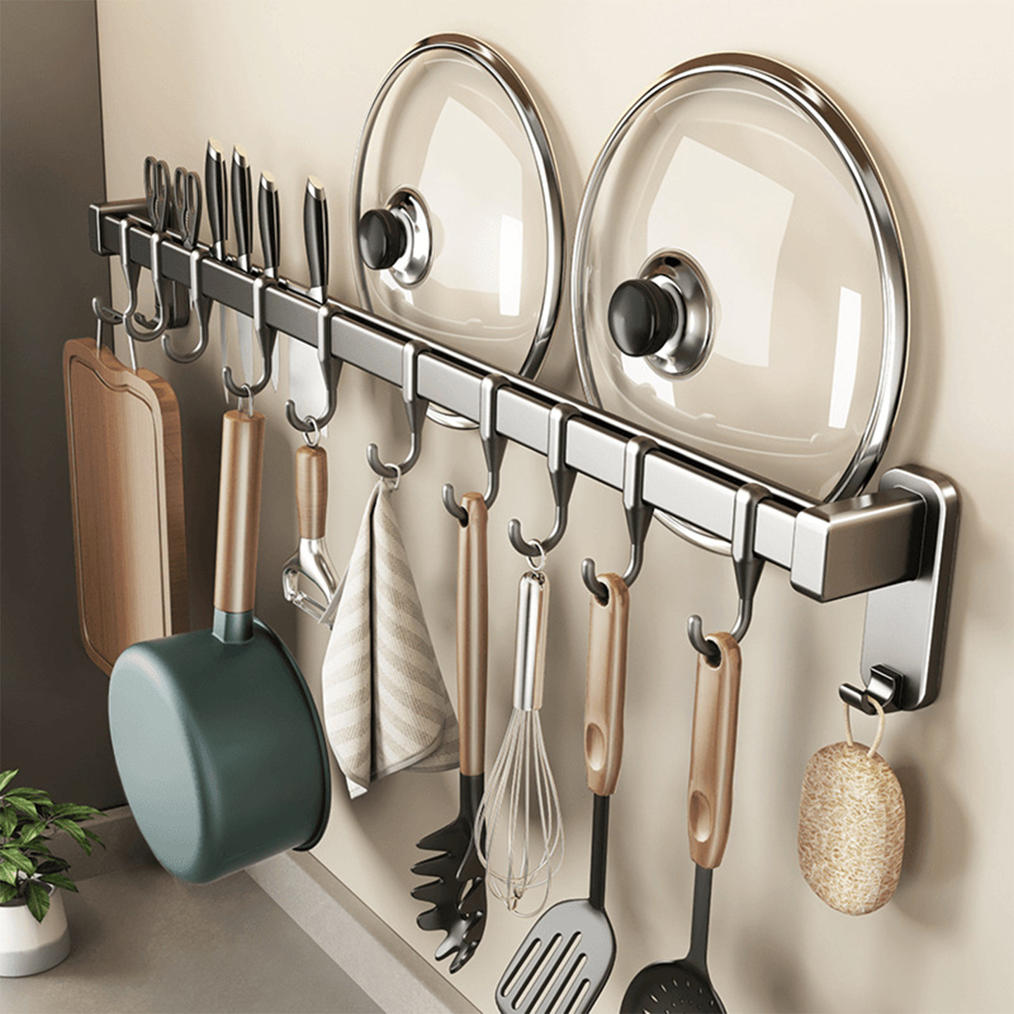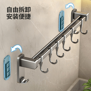 不锈钢连排挂钩厨房墙壁排钩浴室挂衣架可打孔强力承重304一排钩