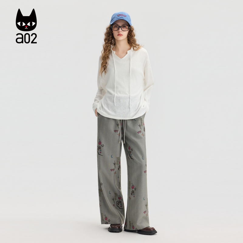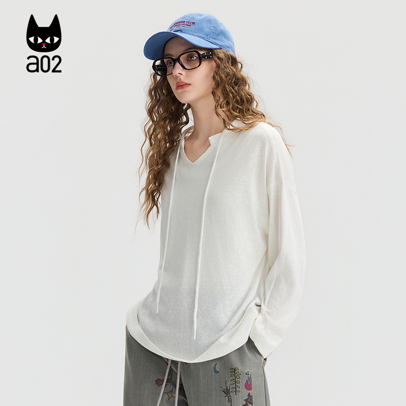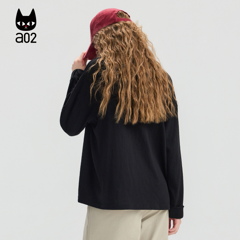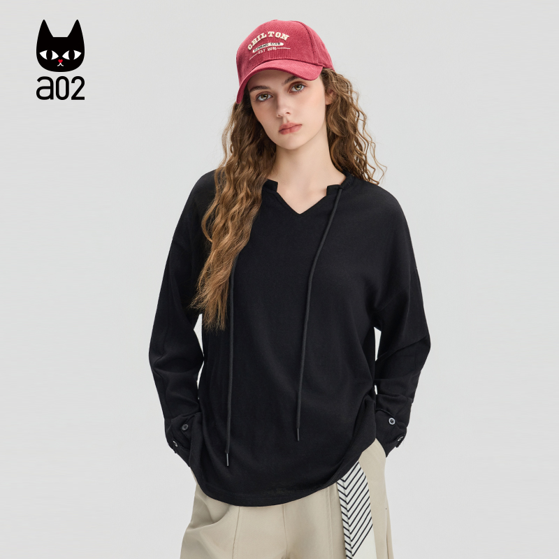 上衣秋装 a02宽松V领长袖 黑色百搭休闲打底衫 秋季 T恤女2025新款