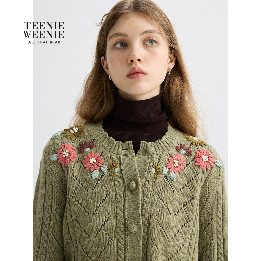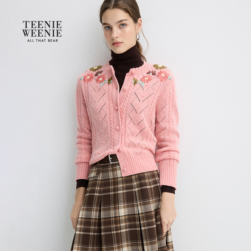 重工花朵绣花毛衣开衫 TeenieWeenie小熊女装 新款 2025冬季 毛针织衫