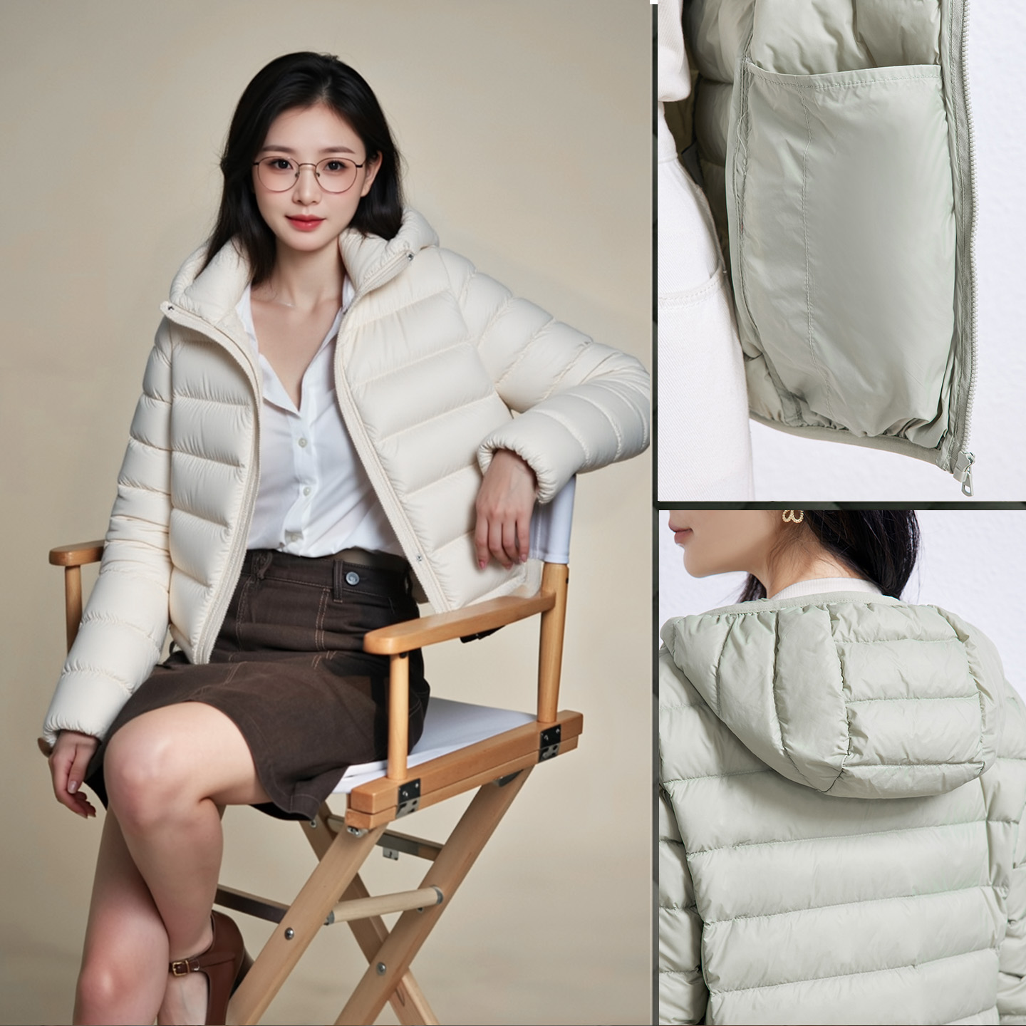 艾莱依2025新款 宽松显瘦下摆抽绳防风保暖短外套 连帽羽绒服落肩袖