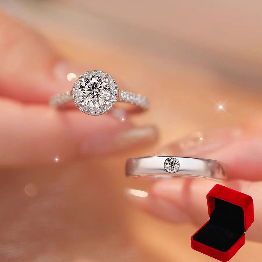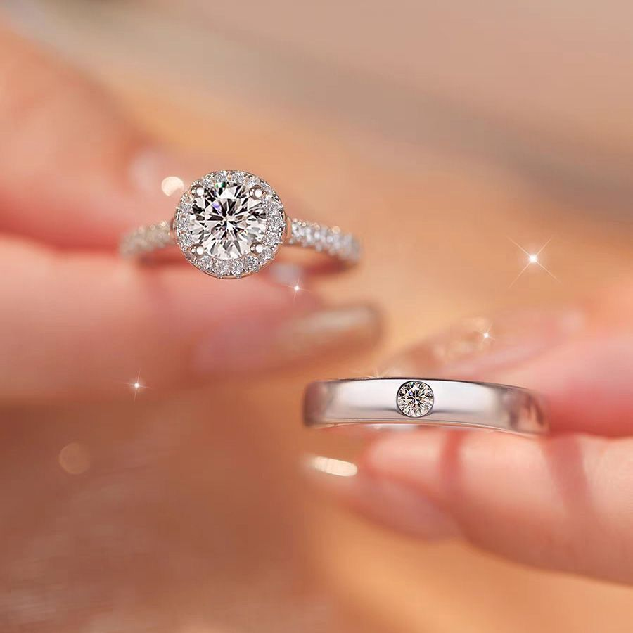 情侣婚礼仿真开口排钻钻戒戒指女婚戒对戒假结婚一对小众设计调节
