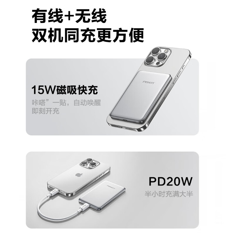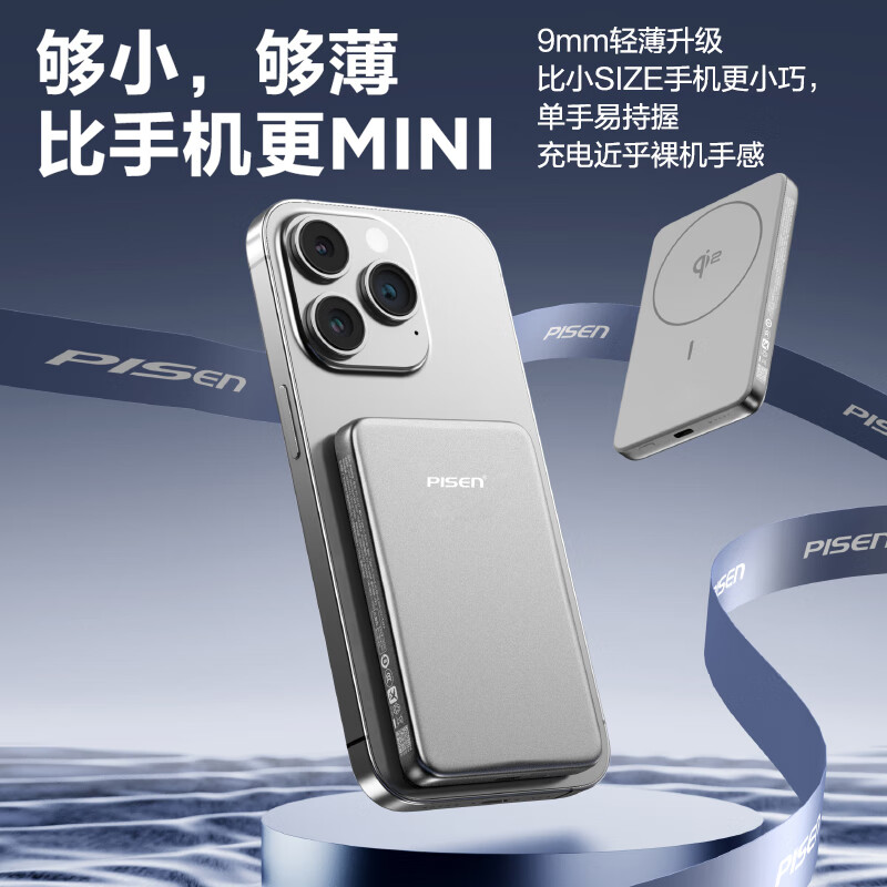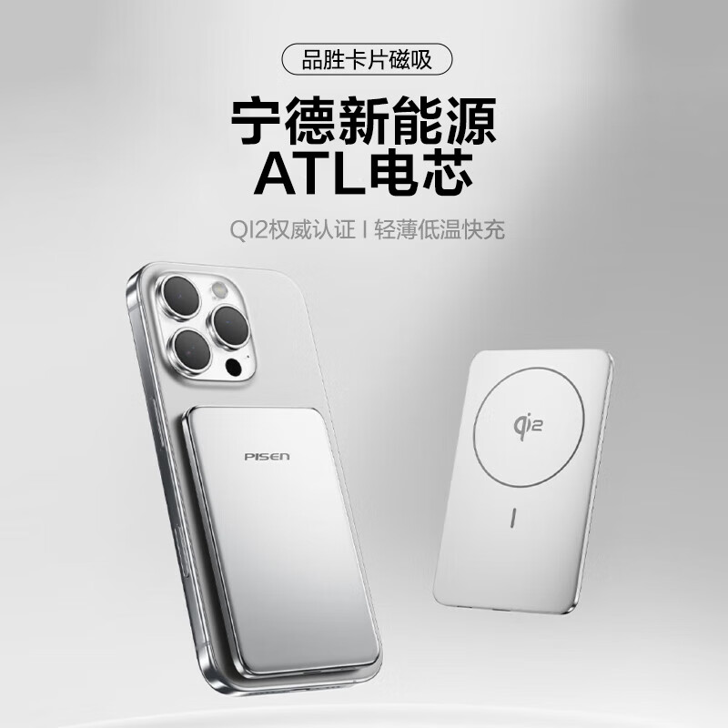 无线充电宝快充适用苹果17iPhone超薄小巧便携移动电源 品胜QI2卡片磁吸2025新款 3C认证充电宝 宁德ATL电芯