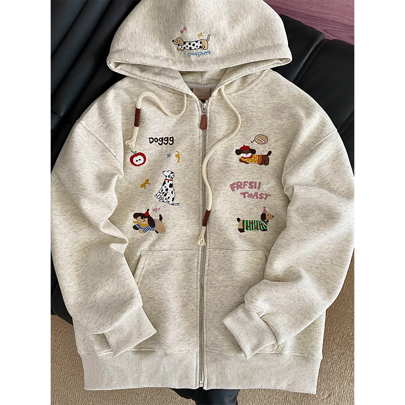 卫衣女2025春秋新款 拉链开衫 胖mm巨遮肉连帽上衣 复古宽松大码 美式