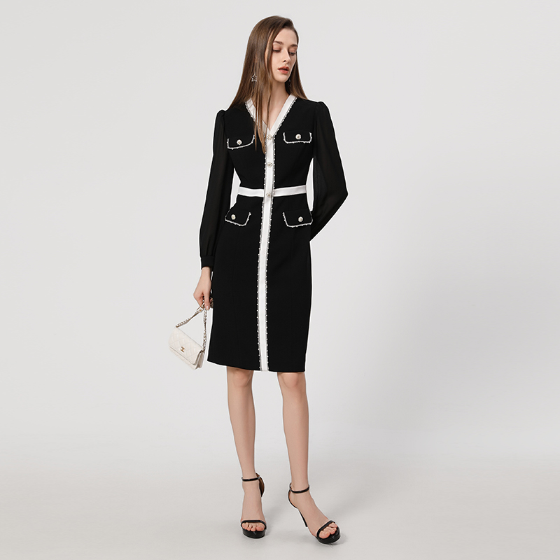 菲梦伊原创钉珠提花连衣裙女秋季 国风高端气质贵妇旗袍裙子 新中式