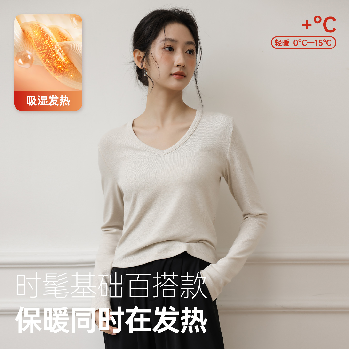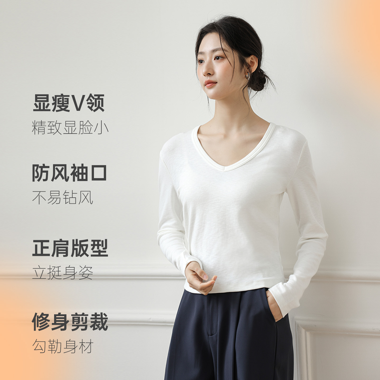 t恤女2025秋冬新款 针织衫 短款 正肩打底衫 上衣 内搭薄款 白色v领长袖