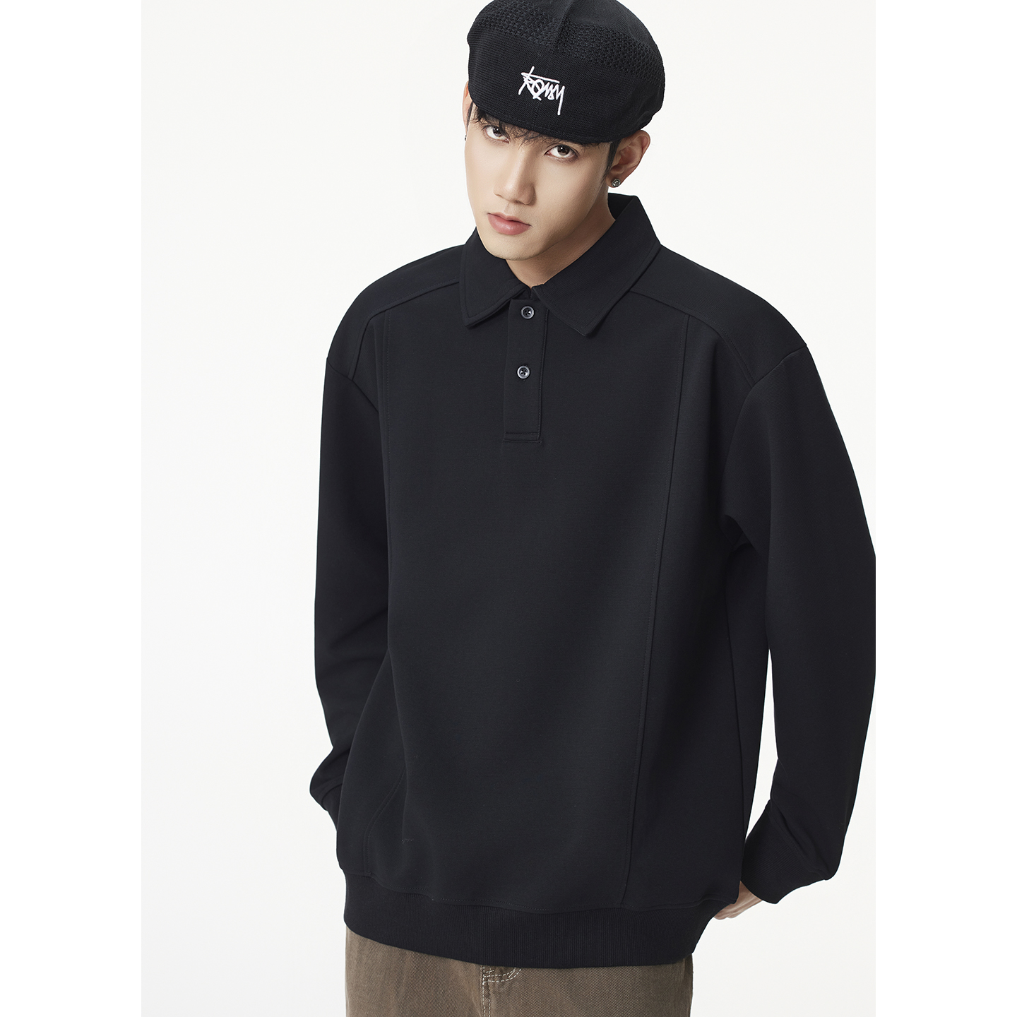 休闲高级感打底衫 潮牌简约正肩POLO衫 2025秋季 Kuvine翻领卫衣男士